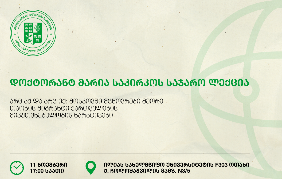 დოქტორანტ მარია საკირკოს საჯარო ლექცია „არც აქ და არც იქ: მოსკოვში მცხოვრები მეორე თაობის მიგრანტი ქართველების მიკუთვნებულობის ნარატივები“